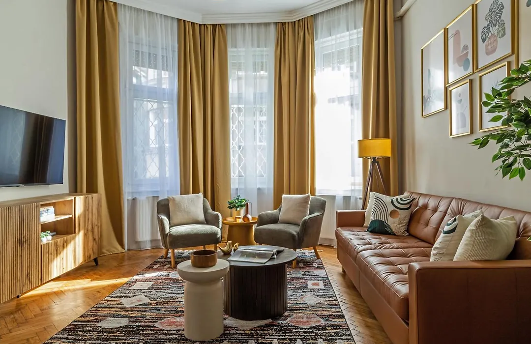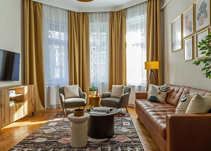 Das 118 m² große Rumbach Royal Apartment Budapest liegt in einer Entfernung von 2 km von der Széchenyi-Therme und in 5 Gehminuten Entfernung von der U-Bahnstation Bajcsy-Zsilinszky út. Die Gäste können den WLAN sowohl für geschäftliche als auch für private Zwecke nutzen.